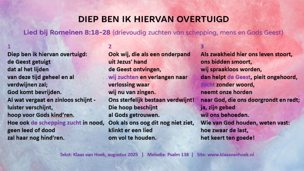 KvH, juni 2023; vers 3 licht herzien in augustus 2025. Gemaakt bij een overdenking over Romeinen 8: 18-28.